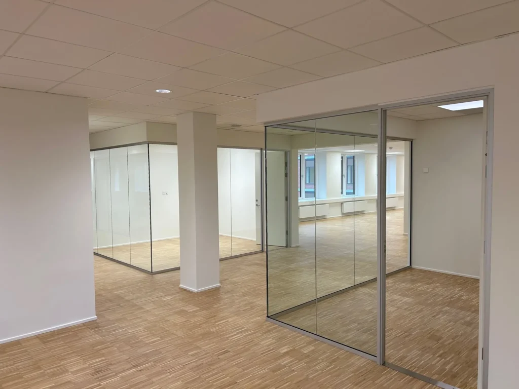 Kunden til Newsec skal leje sig ind på hele 2. salen, hvorfor det var nødvendigt med en strukturel ombygning af hele etagen, efter kundens eget ønske. Indretningsmæssigt har vi nedbrudt vægge og åbnet op til hvér sidefløj, således hele etagen hænger sammen. Tilmed har vi skulle oprette nye kontorlokaler, hvilket har medført opsætning af glas og gips. Ombygningen har også resulteret i ny- og reetablering af el, ventilation og gulvreparation. Vi har ydermere ombygget samtlige 3 køkkener på etagen. Under hele forløbet har Obyg varetaget styringsentreprisen – Dvs. al styring og koordinering af eksterne faggrupper.
