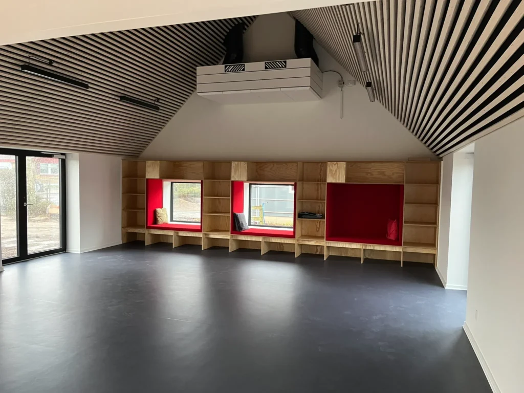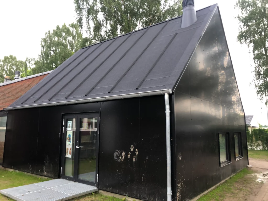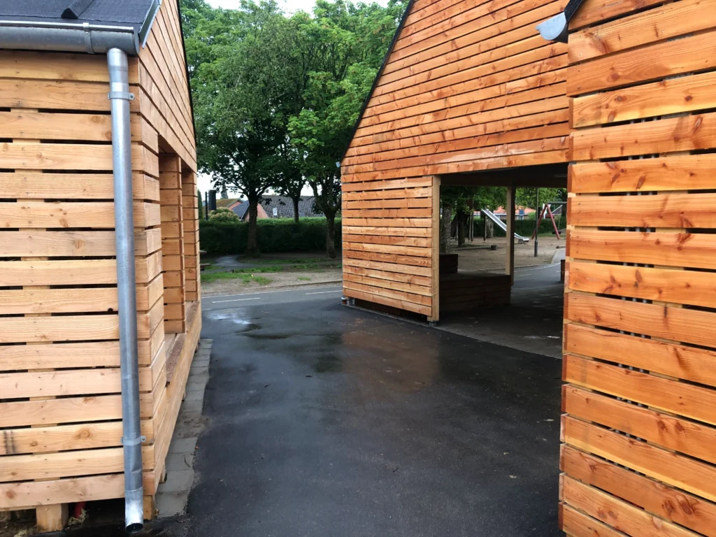 Projektet bestod bl.a. af tilbygning af SFO’en på ca. 64 m², hvortil det omkringliggende udeområde fik etableret ny belægning, cykel- og løbehjulsparkering samt 3 garagedepoter med udeværksted, mooncardepot, brændeskur og kanodepot. Samtlige skure samt udemøbler er udført i flotte trækonstruktioner.